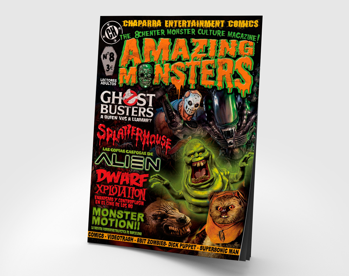 Amazing Monsters es la revista oficial de CHAPARRA ENTERTAINMENT. Un divertido y nostálgico viaje por el terror más añejo y la época dorada de la serie B. En sus páginas podrás encontrar un sinfín de referencias a películas tan olvidadas como demenciales, las últimas noticias acerca de los engendros fílmicos de nuestra productora, la actualidad de la videojerna estatal, reseñas de todo tipo, humor cafre y comics aberrantes! Si no lees el AMAZING no eres un Necrofanático en regla my friend!!